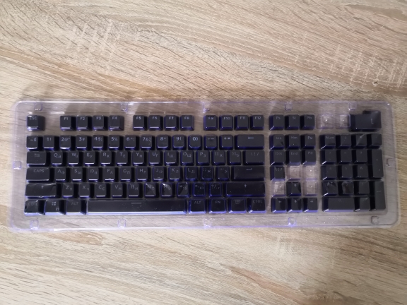 Заказ оформил 12 июля, на почте Китая зарегистрировано 20 июля, трек номер был выдан НЕверный, по нему отслеживался чей то заказ за 19 год. Но в середине июля в приложение почта России появился новый трек код, уже правильный, совпадение по номеру телефона. Доставка осуществлялась в сумме 3 недели через Екатеринбург и последующей доставкой до Москвы. О самом товаре - клавиши крепкие, хорошего качества. Выполнены в 2 этапа - сначала отлит колпачок с насквозь вырезанным символом, затем в колпачок залита эпоксидка и ножка. Выглядит аккуратно, однако из-за такой технологии яркость клавиш заметно ниже, чем на родных колпачках. На фото это заметно так, будто бы родные чрезмерно сильно светятся, а сменные как раз ; это из-за высокой светочувствительности фотообъектива, на самом деле на глаз яркости в половину меньше и сменные достаточно тусклые. Зато теперь подсвечиваются русские символы. В целом за 600 рублевые колпачки требовать чего-то лучшего наверное не стоит.