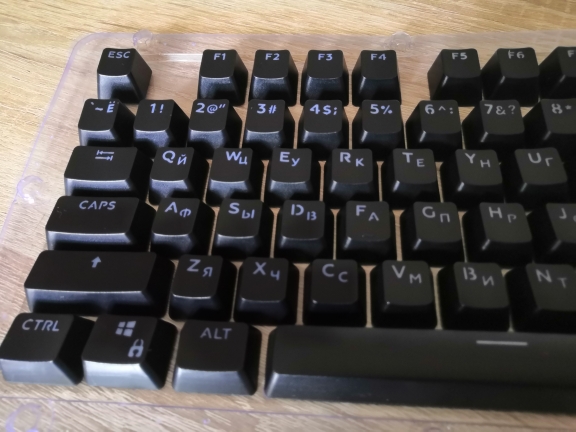 On the wide keys there are traces of manufacturing, the letters are made of transparent plastic, unlike matte on Anne pro-with backlit letters turned off darker than on standard, on the contrary. Plastic is also slightly worse, some keys of different heights, if you look around. The Keys of the nampad are badly made and some letters too. But in general for its price OK