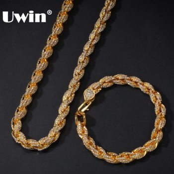 UWIN NE+BA 9mm Rope Chain Necklaces & Bracelets Full Iced Out Rhinestones Bling Biling 7/8/9inch Fashion Hiphop Jewelry