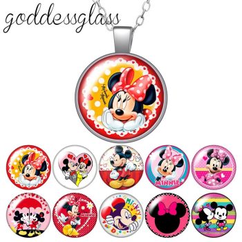 Cute Mickey Mouse Minnie mouse Kids Gift Round Glass glass cabochon silver plated/Crystal pendant necklace jewelry for Gift
