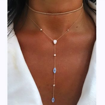 Evil eye charm necklace Cute lovely eye white cz link chain long Y lariat women sexy necklaces jewelry
