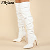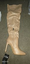 Superb boots! The thigh high boots hold the leg very well. The color is like on the pictures bright white. Very comfortable to walk with, I recommend😄