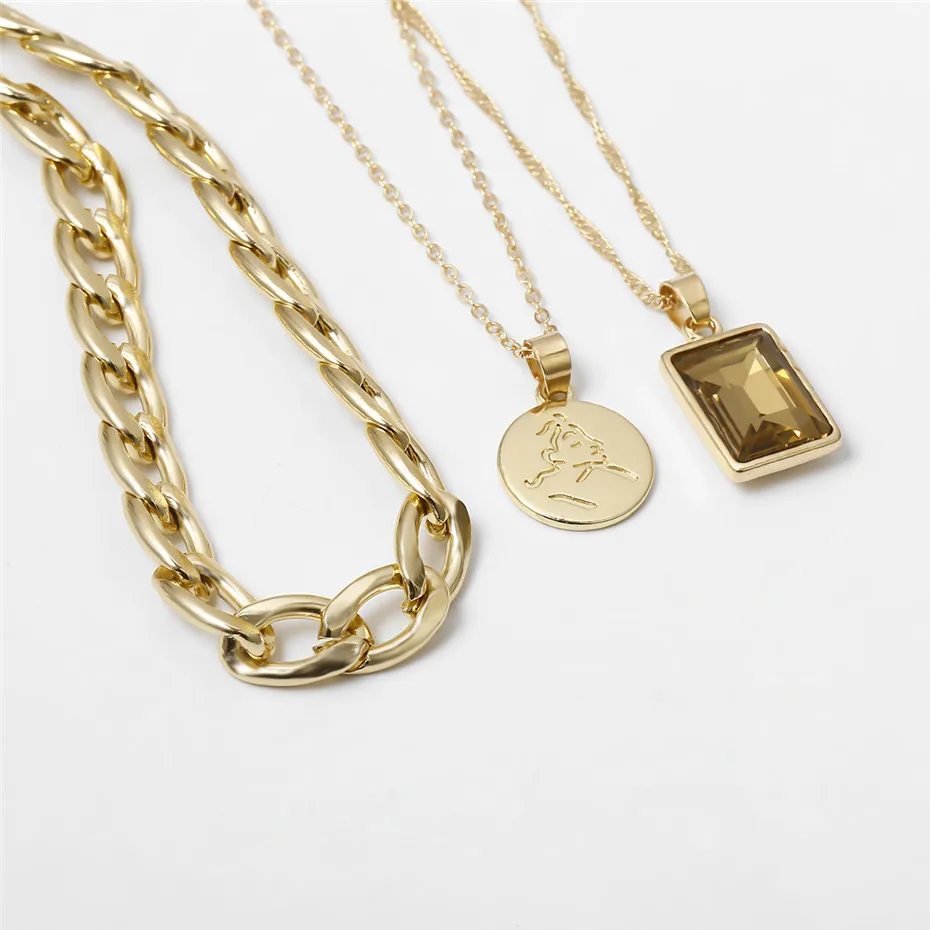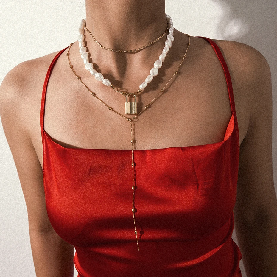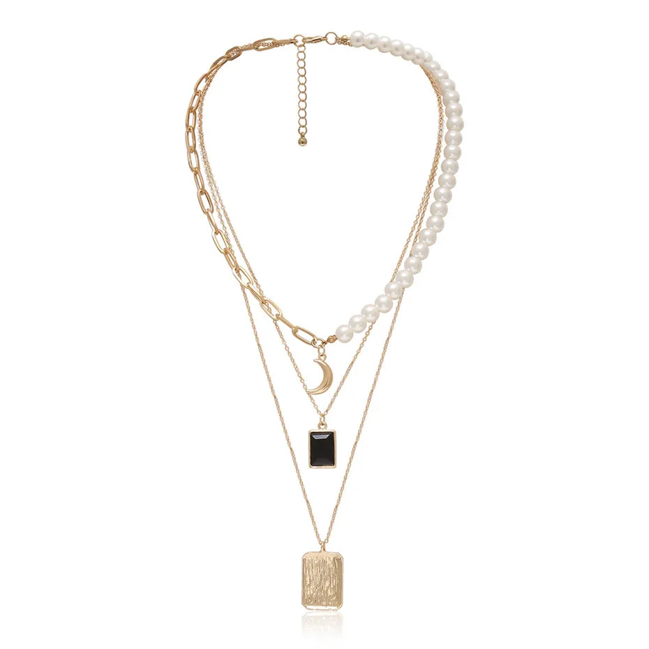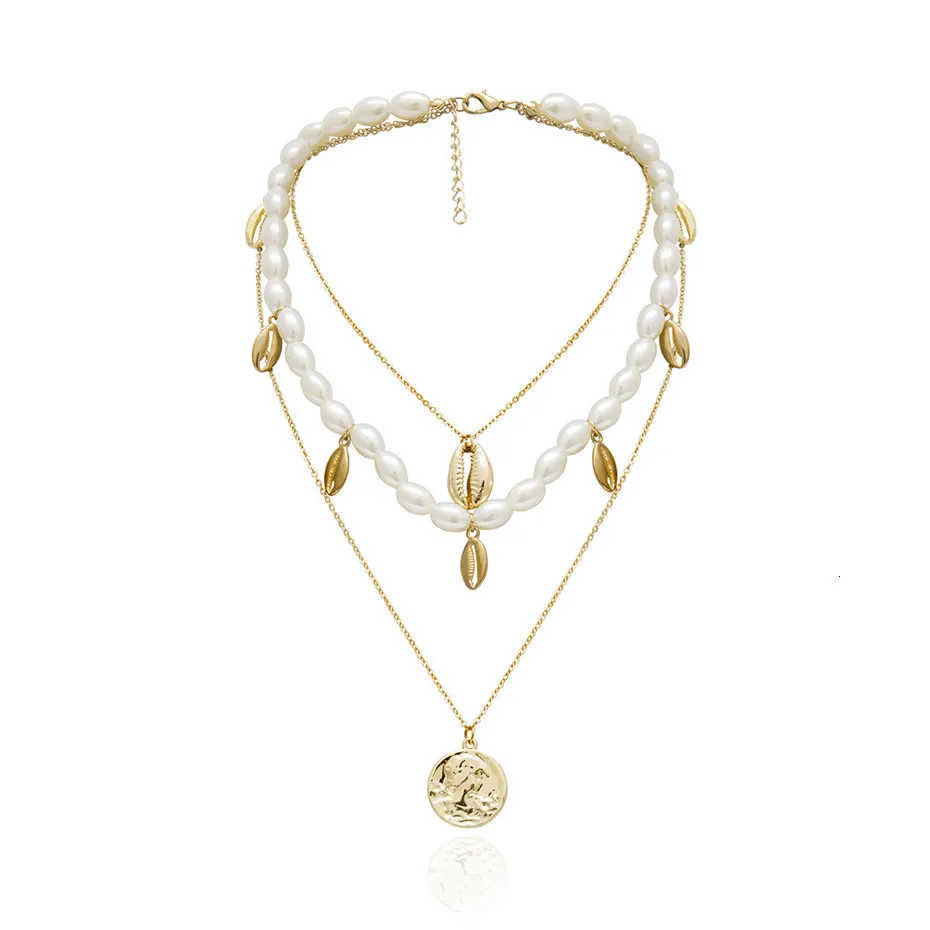 IngeSight.Z Punk Multi Layered Pearl Choker Necklace Collar Statement Virgin Mary Coin Crystal Pendant Necklace Women Jewelry