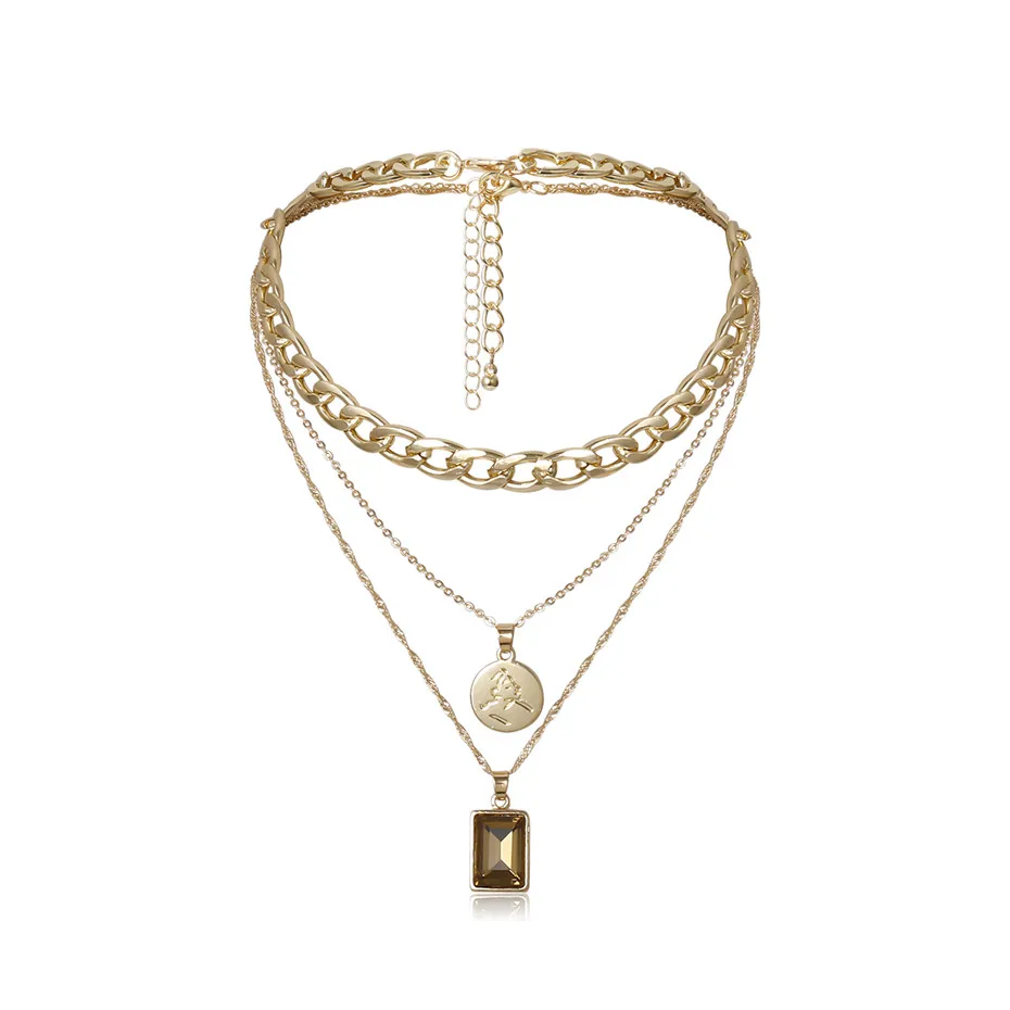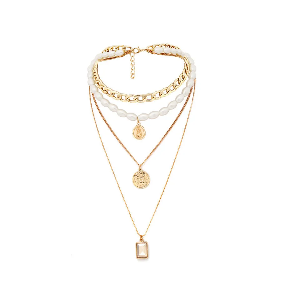 Punk Multi Layered Pearl Choker Necklace Collar Statement Virgin Mary Coin Crystal Pendant Necklace Women Jewelry