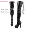 LAIJIANJINXIA Night Club Party Queen Boots Over The Knee Boots High Heels Women Boots Sexy Plus Size 46 Thin Heels Shoes A-034