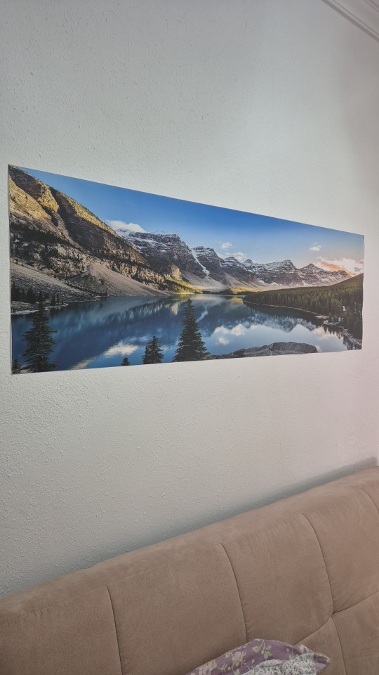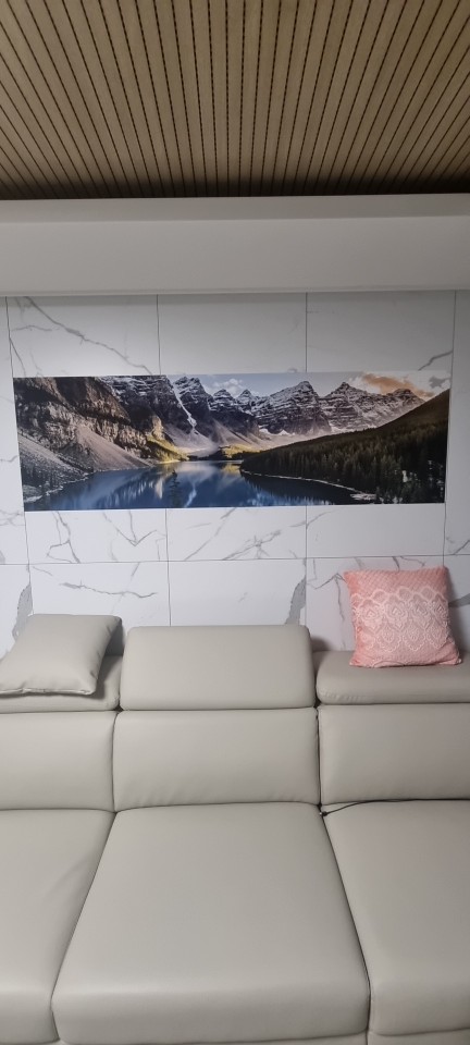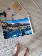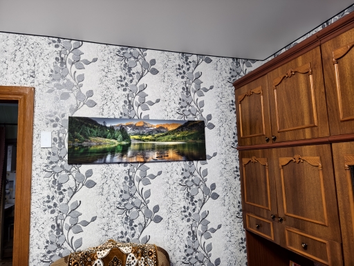 The landscape on the canvas is beautiful. Let's see how it looks like when I hang him